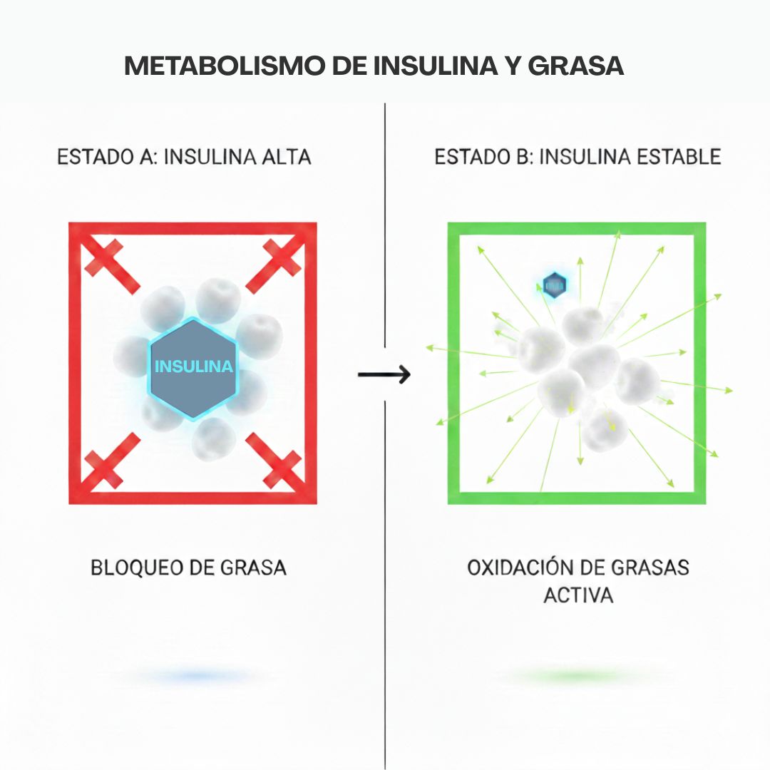 Cada vez que consumimos snacks con azúcares refinados o harinas procesadas, provocamos picos de insulina. Esta hormona actúa como un "interruptor": cuando la insulina está alta, la quema de grasa se detiene. Si nuestra dieta provoca picos constantes, el cuerpo pierde la práctica de movilizar las grasas, afectando no solo a tu rendimiento, sino también a tu claridad mental.