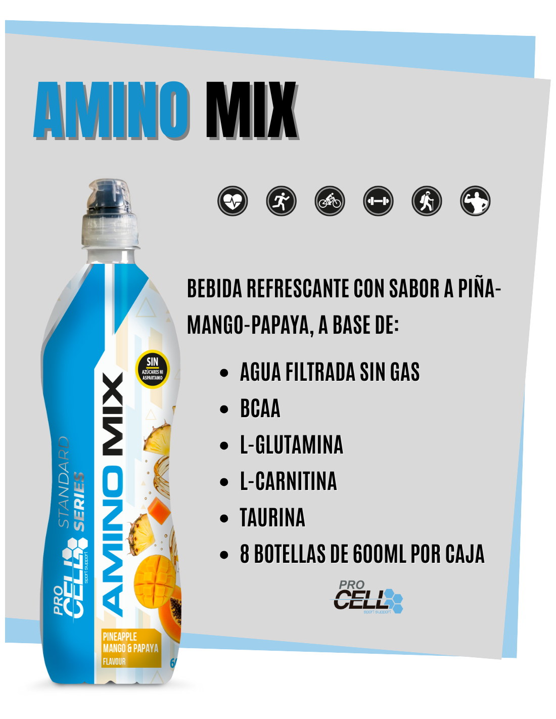 ¿Te gustaría una bebida que te ayude a que tu entrenamiento sea más eficaz? ¡Entonces elige AMINOMIX de Procell Sport para ayudarte a lograr un entrenamiento exitoso y la recuperación posterior!